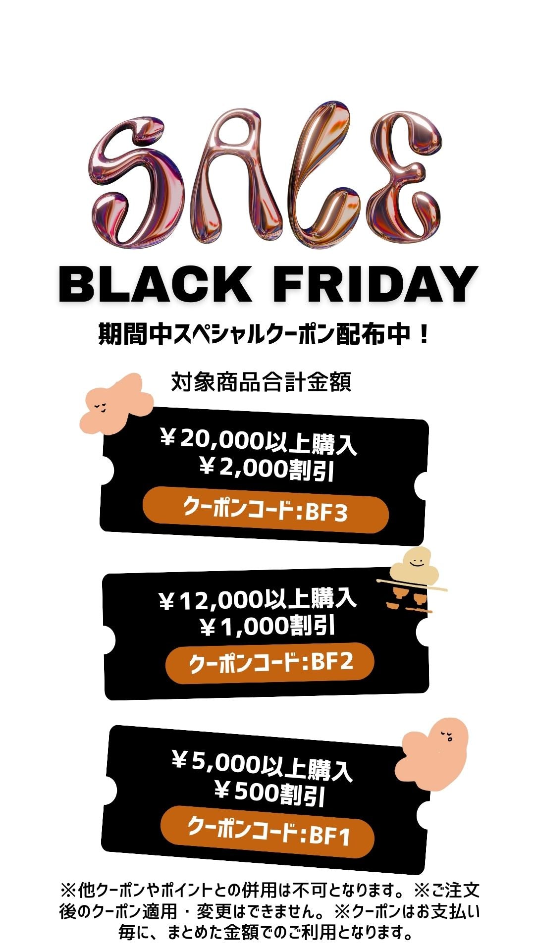 今年のブラックフライデーは、特別な5日間。期間中だけご利用いただけるクーポンや、限定割引、人気商品のセット割など、お得な企画を多数ご用意しました。