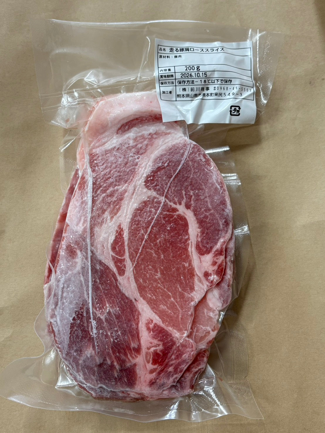 豚肩ロースは、首の後ろの肩肉と腰肉の間にあり、ロースと比べてお肉全体に脂肪が混ざっており、味わいが濃厚なお肉です。