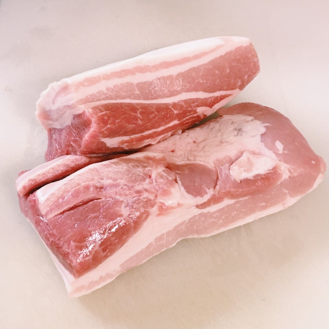 豚バラブロックは、胴体のあばら骨についている部位です。赤身と脂肪が三層になっていることから、三枚肉ともいわれています。濃厚な脂身が特徴で、こってりとしてボリュームがあります。